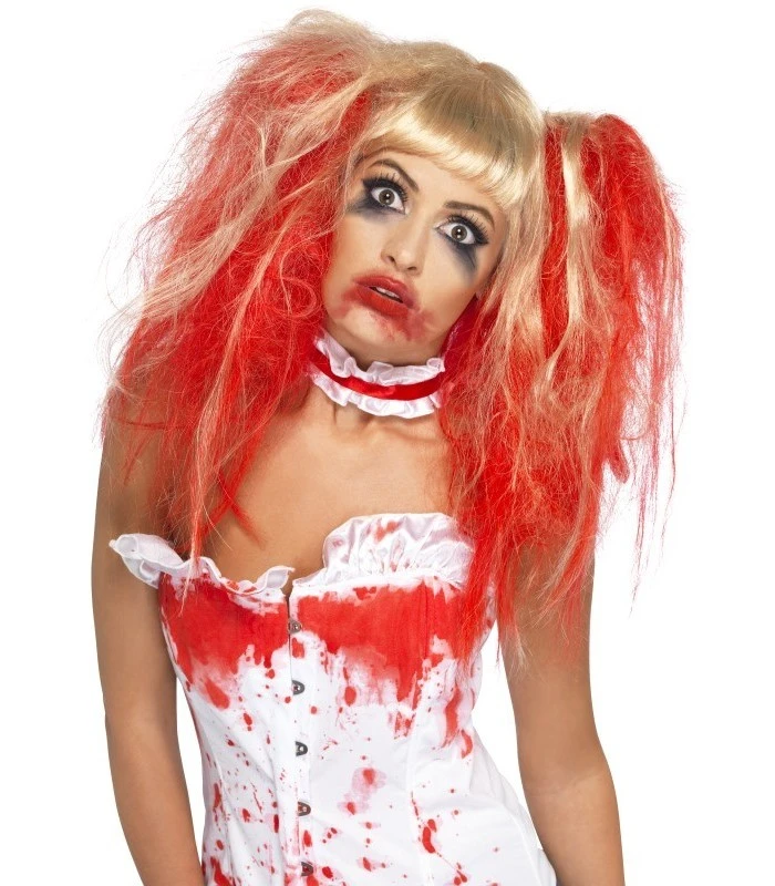 Blood Drip Wig, Blonde, with Bunches & Blood Drip Effect, in Display Box