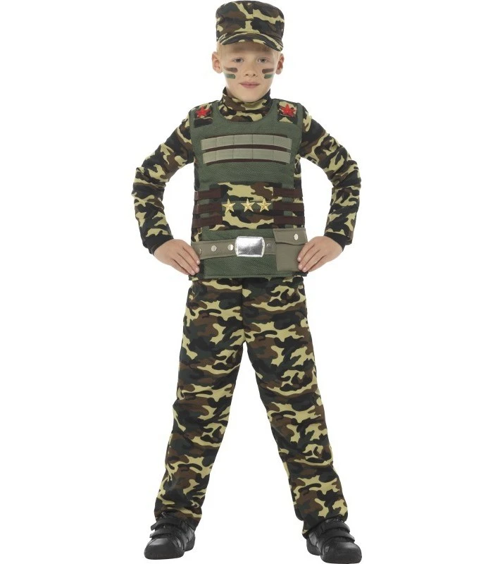 Camouflage Military Boy Costume, Green, with Top, Trousers & Hat, in Display Bag