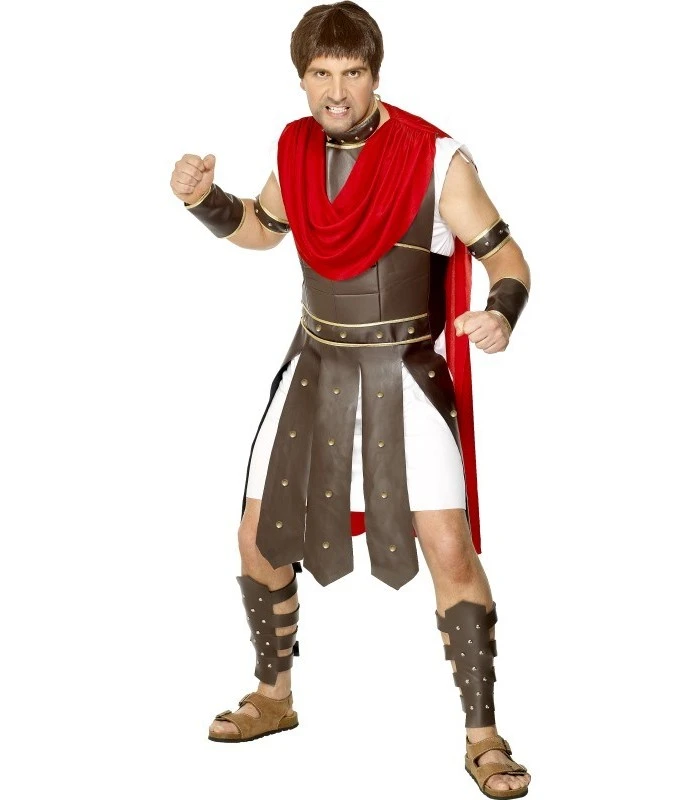 Centurion Costume, Brown, Robe & Legs, Arms, Wrists & Neck Armour, in Display Bag