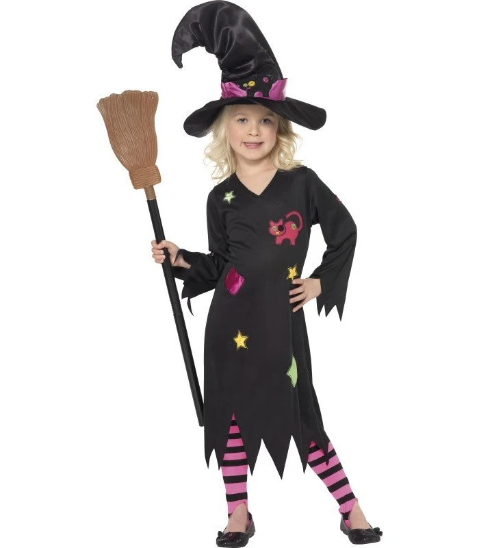 Cinder Witch Costume, Black, with Dress, Hat & Tights, in Display Bag