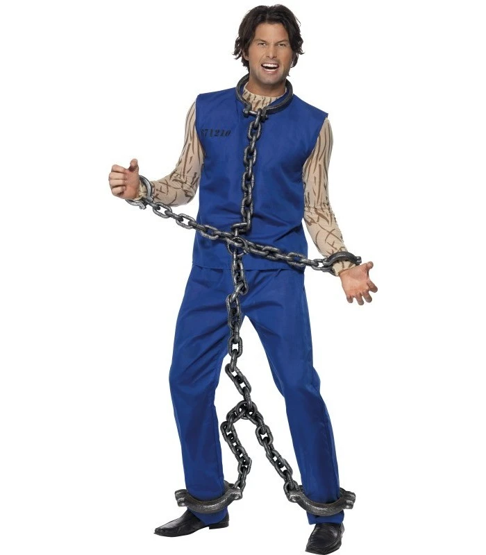 Convict Chains, Silver, Full Body Shackles for Arms & Legs, 180cm Long, on Display Card