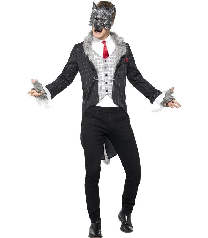 Big Bad Wolf Costume, Deluxe, Grey, with Jacket, Detachable Tail, Mock Shirt, Mask & Gloves, in Display Bag