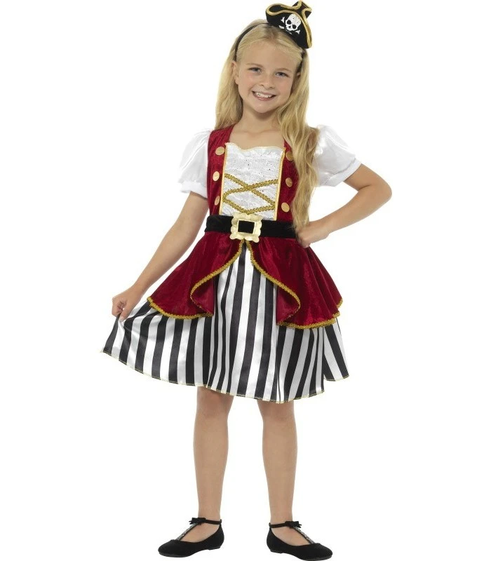Deluxe Pirate Girl Costume, Red & Black, with Dress & Hat, in Display Bag