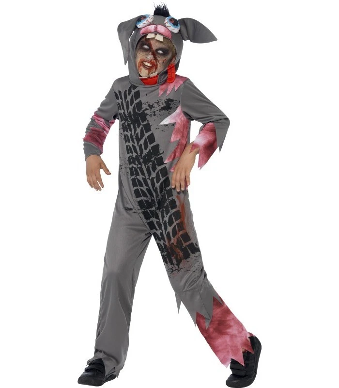 Deluxe Roadkill Pet Costume, Grey, with Jumpsuit & Headpiece, in Display Bag
