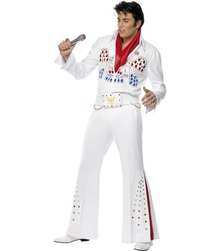 Elvis American Eagle Costume, White, Jumpsuit with Belt and Scarf, in Display Bag