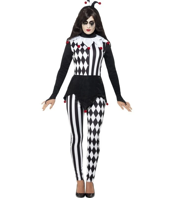 Female Jester Costume, Black, with Top, Leggings & Headband, in Display Bag