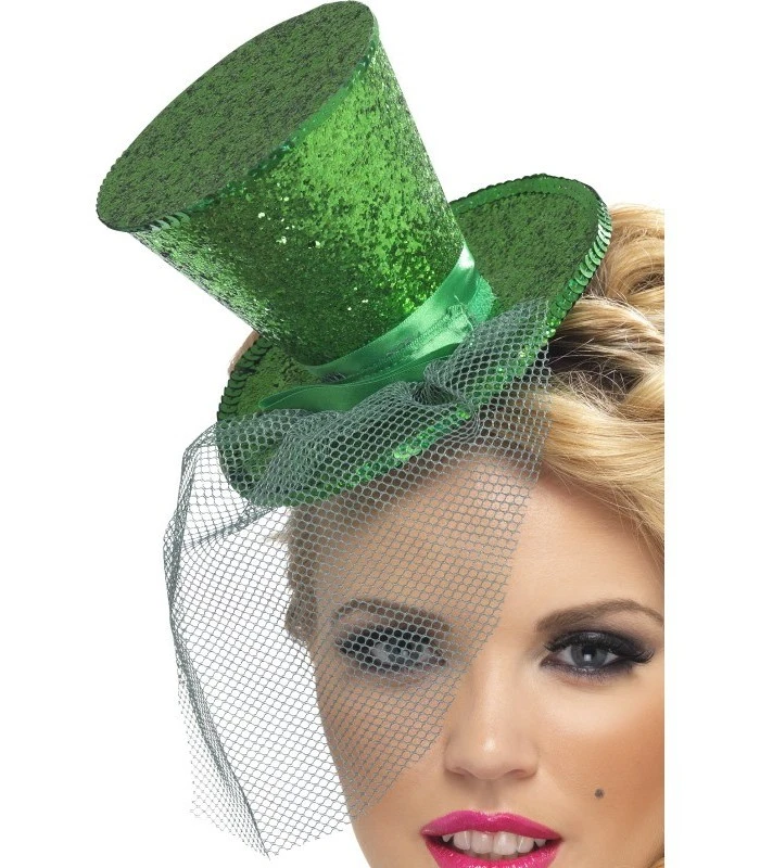 Fever Mini Top Hat on Headband, Green, with Detachable Netting, in Display Pack