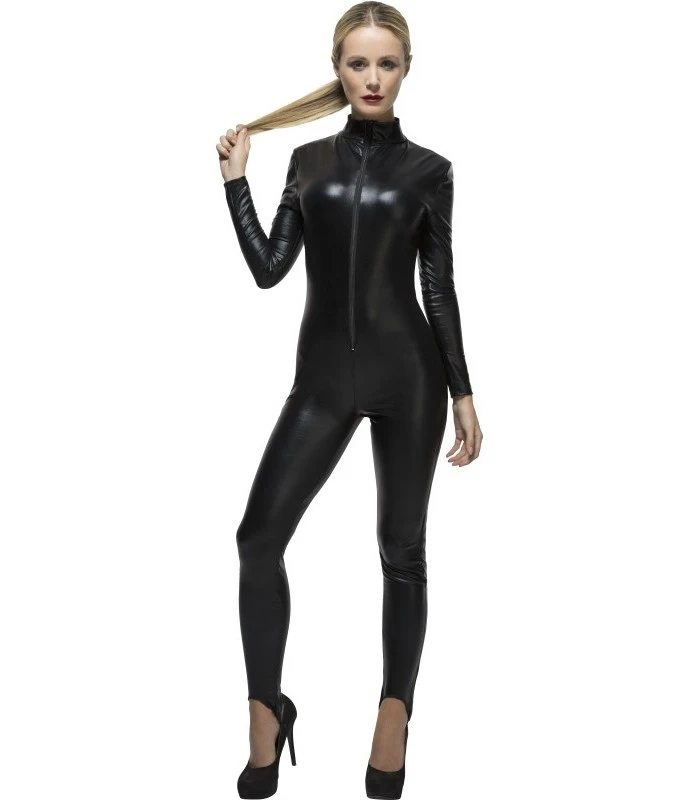 Fever Miss Whiplash Costume, Black, with Zip Up Catsuit, in Display Bag