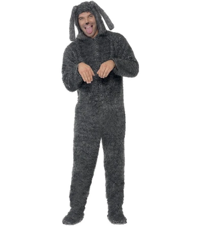 Fluffy Dog Costume, Grey, with Hooded All in One, in Display Bag