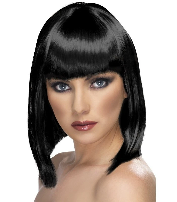 Glam Wig, Black, Short, Blunt with Fringe, in Display Box