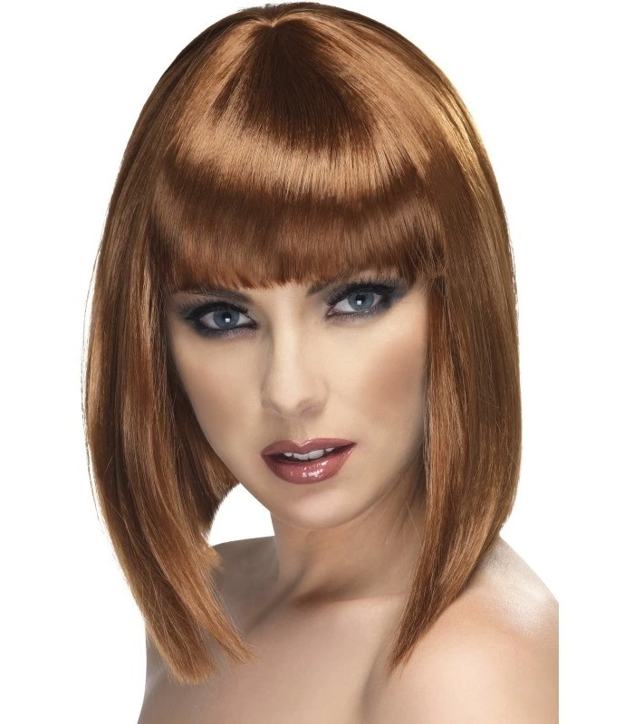 Glam Wig, Brown, Short, Blunt with Fringe, in Display Box