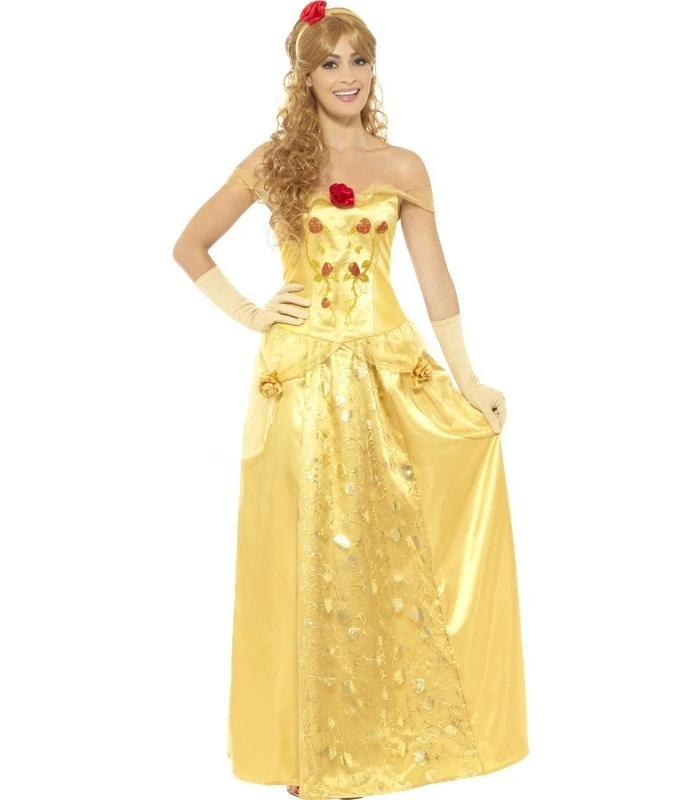 Golden Princess Costume, Gold, with Long Dress, Gloves & Headband, in Display Bag