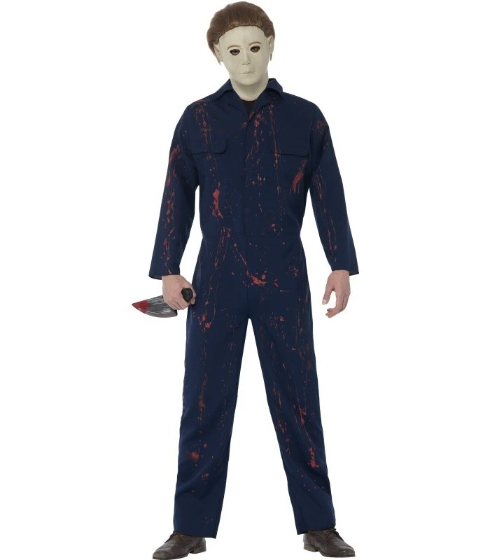 Halloween H20 Michael Myers Costume, Blue, with Jumpsuit, Latex Mask & Knife, in Display Bag
