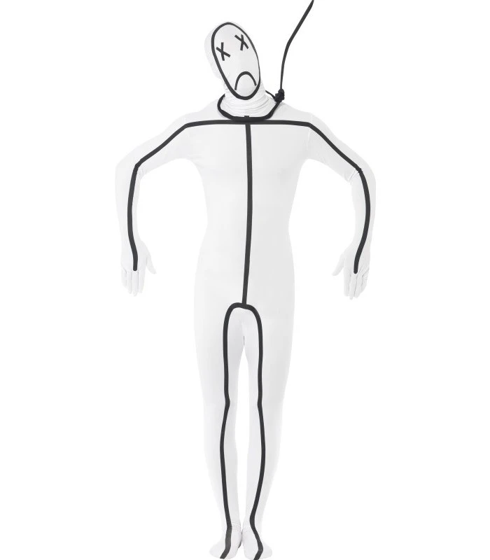 Hangman Second Skin Costume with Noose, White, with Bum Bag, Concealed Fly & Under Chin Opening, in Display Bag
