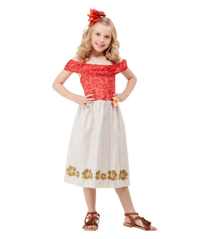 Hawaiian Princess Costume, Red, with Dress & Hairclip, in Display Bag
