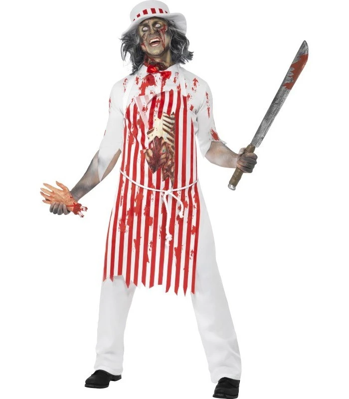 Hell’s Kitchen Bloody Butcher Costume, White, with Trousers, Shirt, Apron and Hat, in Display Bag