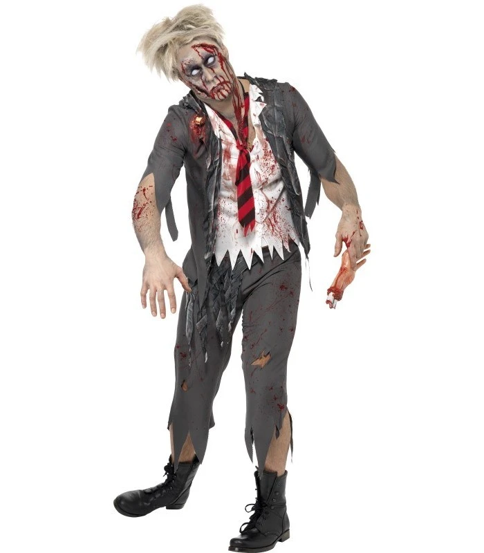 High School Horror Zombie Schoolboy Costume, Grey, with Jacket, Attached Shirt, Tie & Trousers, in Display Bag