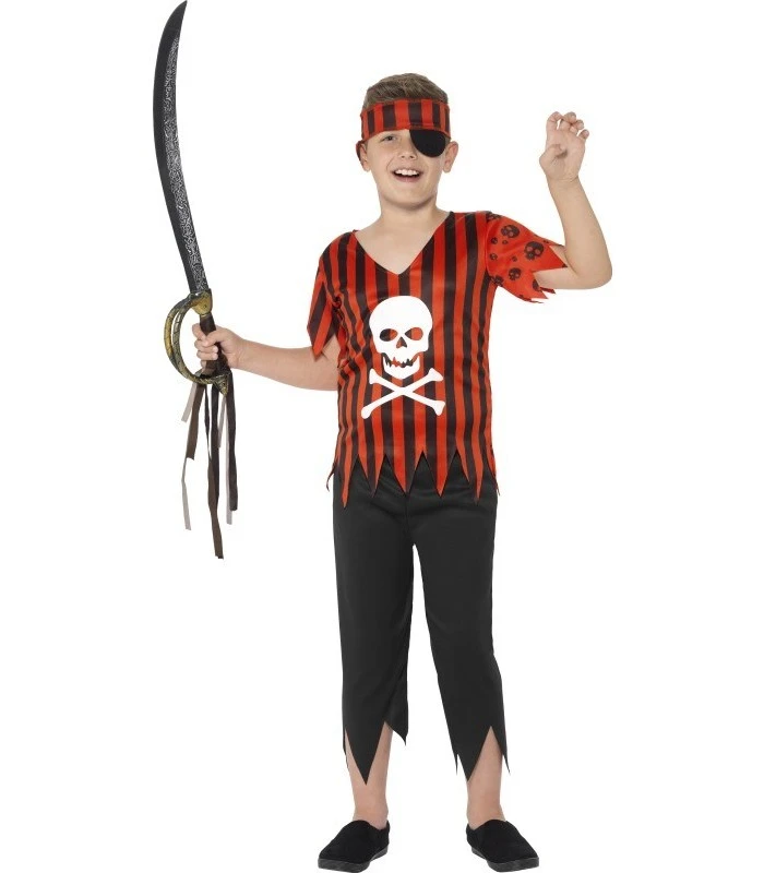 Jolly Roger Pirate Costume, Red, with Top, Trousers & Headband, in Display Bag