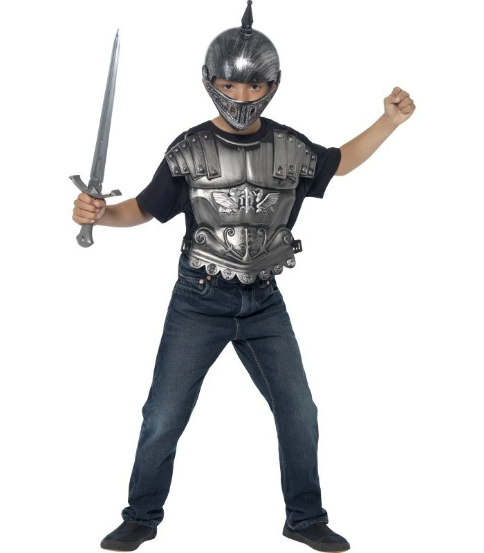 Medieval Kit, Silver, with Breastplate, Helmet & Sword