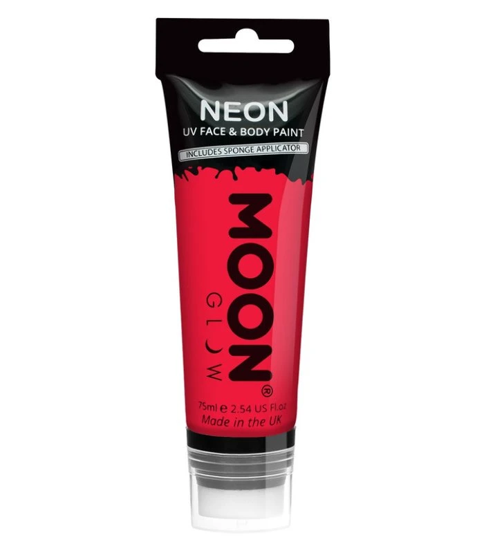 Moon Glow Supersize Intense Neon UV Face Paint, Re Single, with Sponge Applicator, 75ml