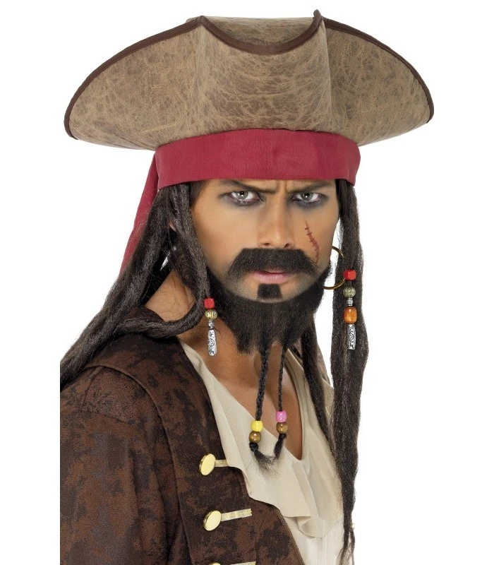 Pirate Hat, Brown, with Hair Dreadlocks, on Headercard