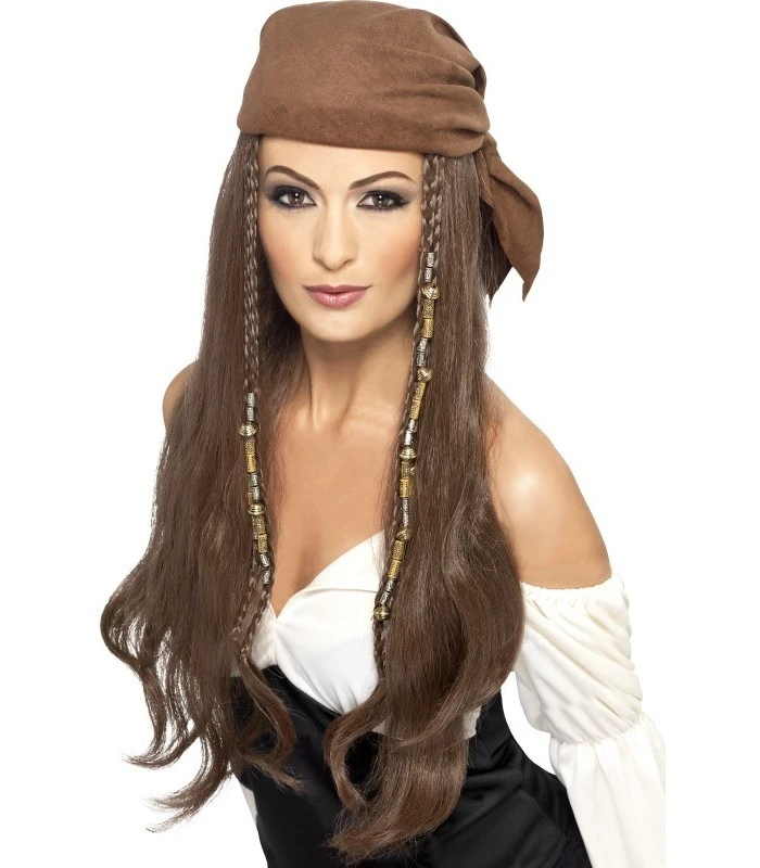 Pirate Wig, Brown, with Bandana, Beads and Charms, in Display Box