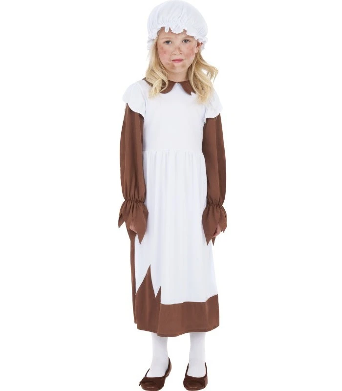 Poor Victorian Costume, Brown & White, with Dress & Hat, in Display Bag