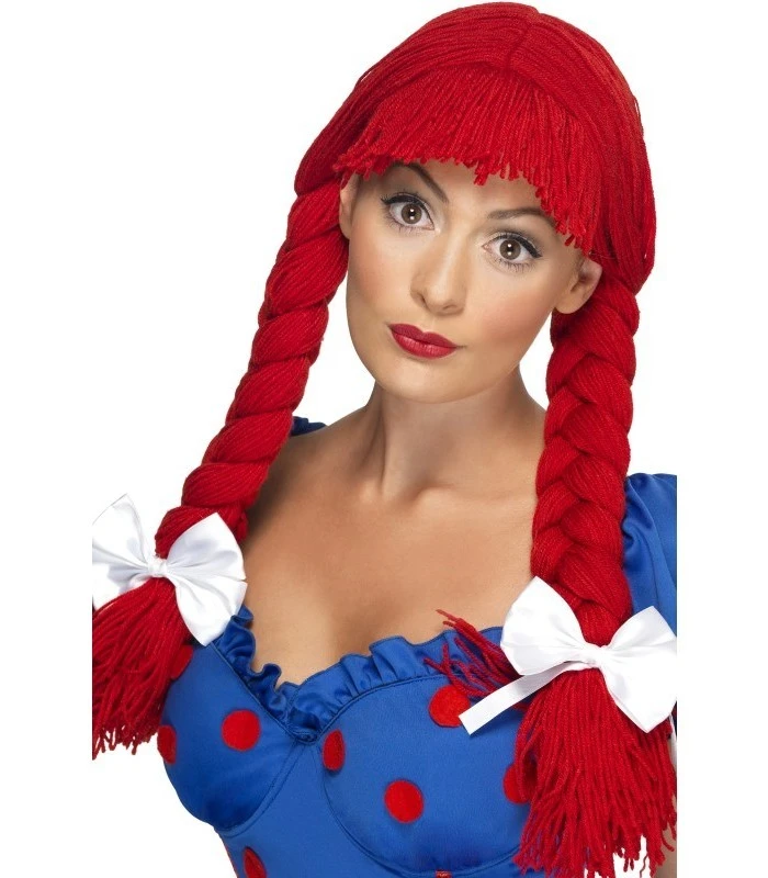 Rag Doll Wig, Red, Pigtails with a Fringe and Bows, in Display Box