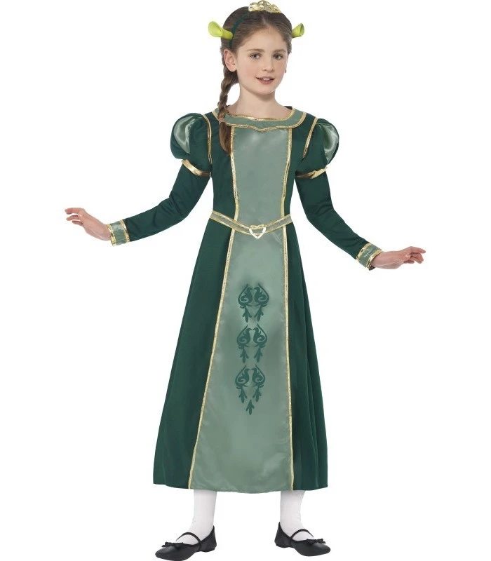 Shrek Princess Fiona Costume, Green, with Dress, Tiara Headband & Ears, in Display Bag