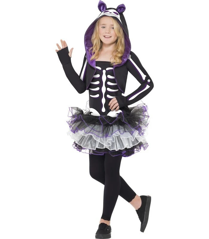 Skelly Cat Costume, Black, with Dress and Shrug with Hood, in Display Bag