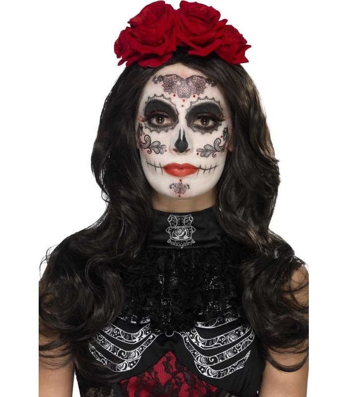 Day of the Dead Glamour Make-Up Kit, with, Black, Transfers, Face Paint, Lashes, Jewels & Applicator, on Display Card