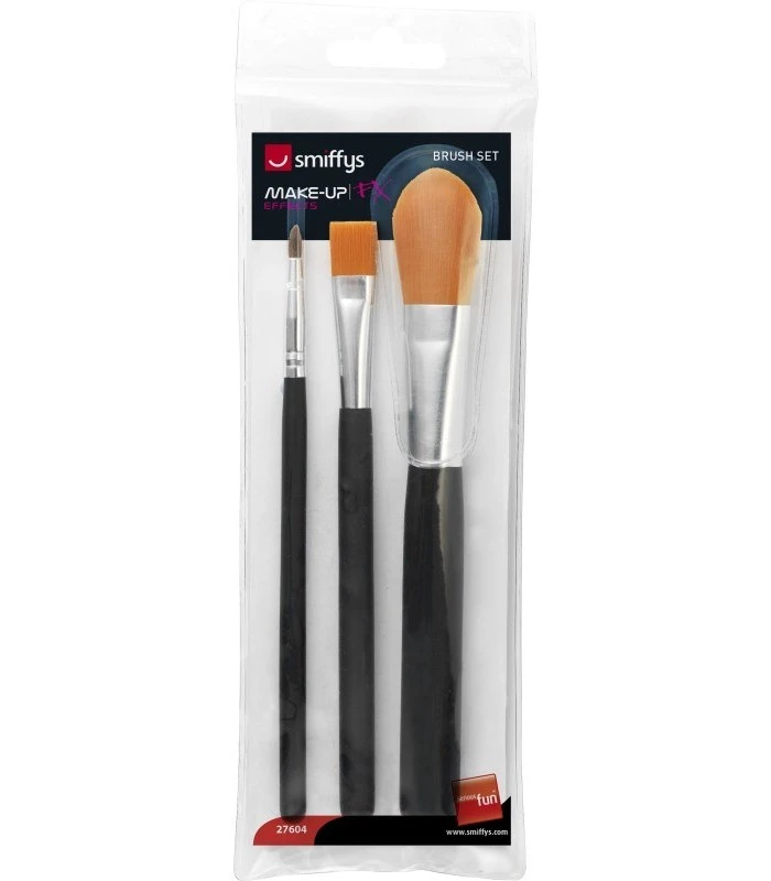 Cosmetic Brush Set, Pack of 3, Black, in Display Bag