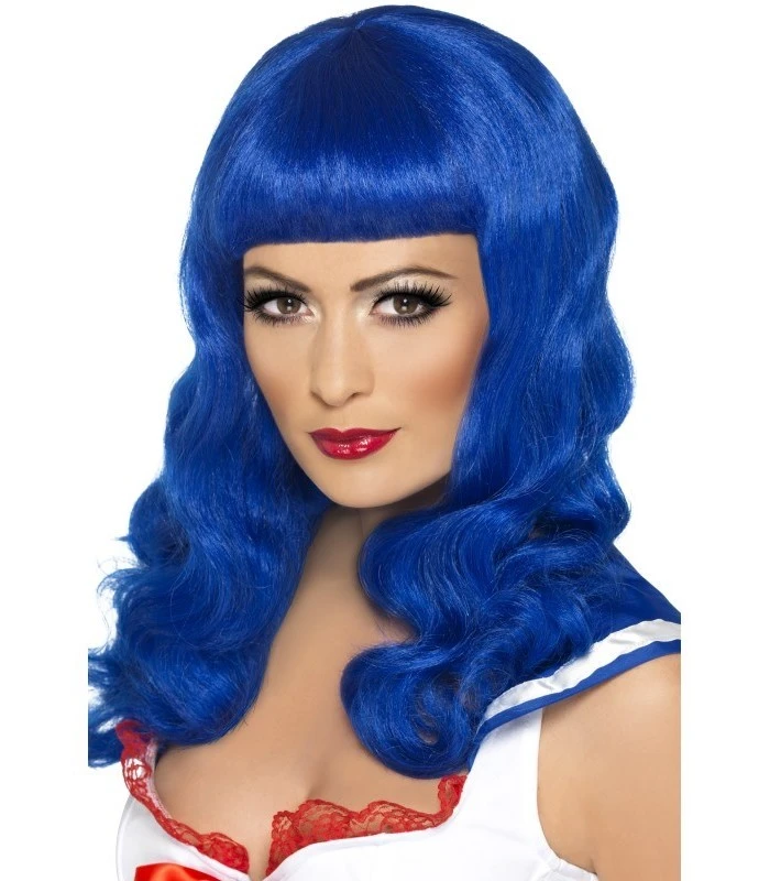 Sweetheart Wig, Blue, Wavy with Fringe, in Display Box