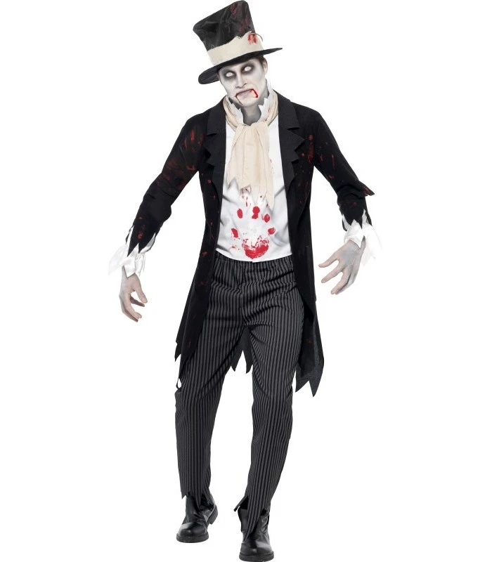 Till Death Do Us Part Zombie Groom Costume, Black, Jacket with Waistcoat, Scarf, Trousers and Top Hat, in Display Bag