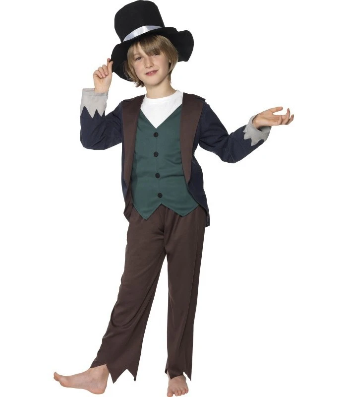 Victorian Poor Boy Costume, Brown, Top, Trousers & Hat, in Display Bag