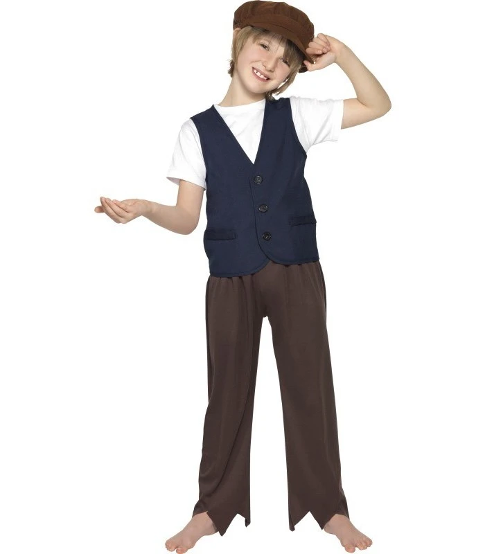 Victorian Poor Peasant Boy Kit, Brown, Waistcoat & Hat, in Display Bag