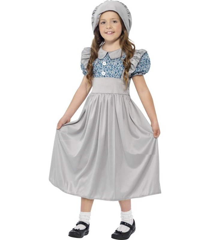 Victorian School Girl Costume, Grey, with Dress & Hat, in Display Bag