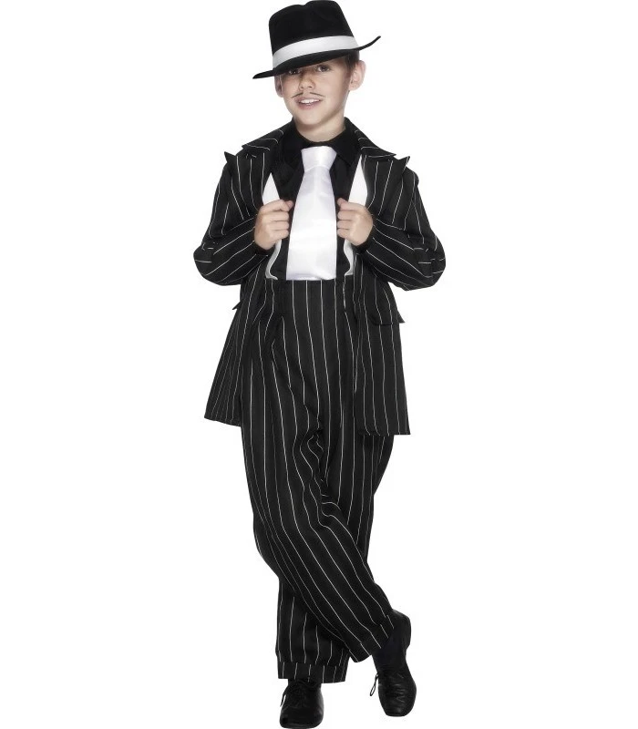 Zoot Suit Costume, Black, with Jacket, Trousers & Braces, in Display Bag