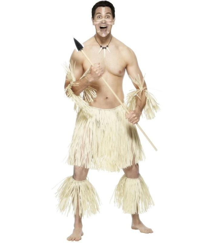 Zulu Warrior Costume, Cream, with Skirt, Anklets and Wristbands, Straw, in Display Bag